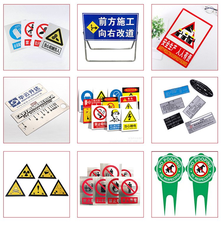 安全標(biāo)志牌是以紅色、黃色、藍(lán)色、綠色為主要顏色,輔以邊框、圖形符號(hào)或文字構(gòu)成的標(biāo)志,用于表達(dá)與安全有關(guān)的信息。